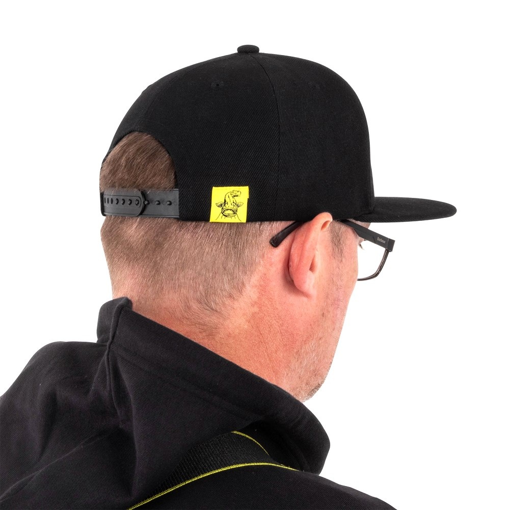 Čierna šiltovka Black Cat s plochým šiltom.